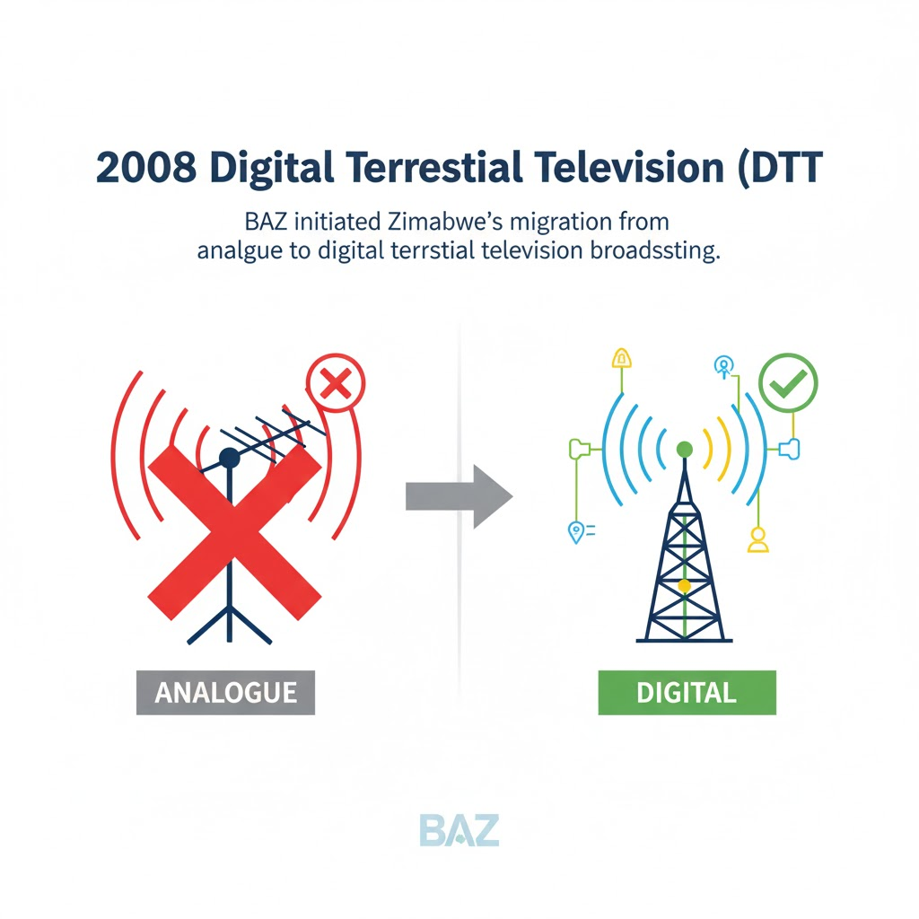 BAZ initiated Zimbabwe's migration from analogue to digital terrestrial television broadcasting.