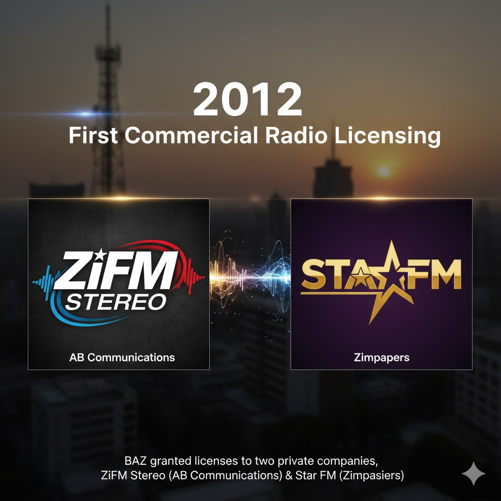 BAZ granted licenses to two private companies, AB Communications and Zimpapers, which operate two radio stations each, ZiFM Stereo, and Star FM, respectively.